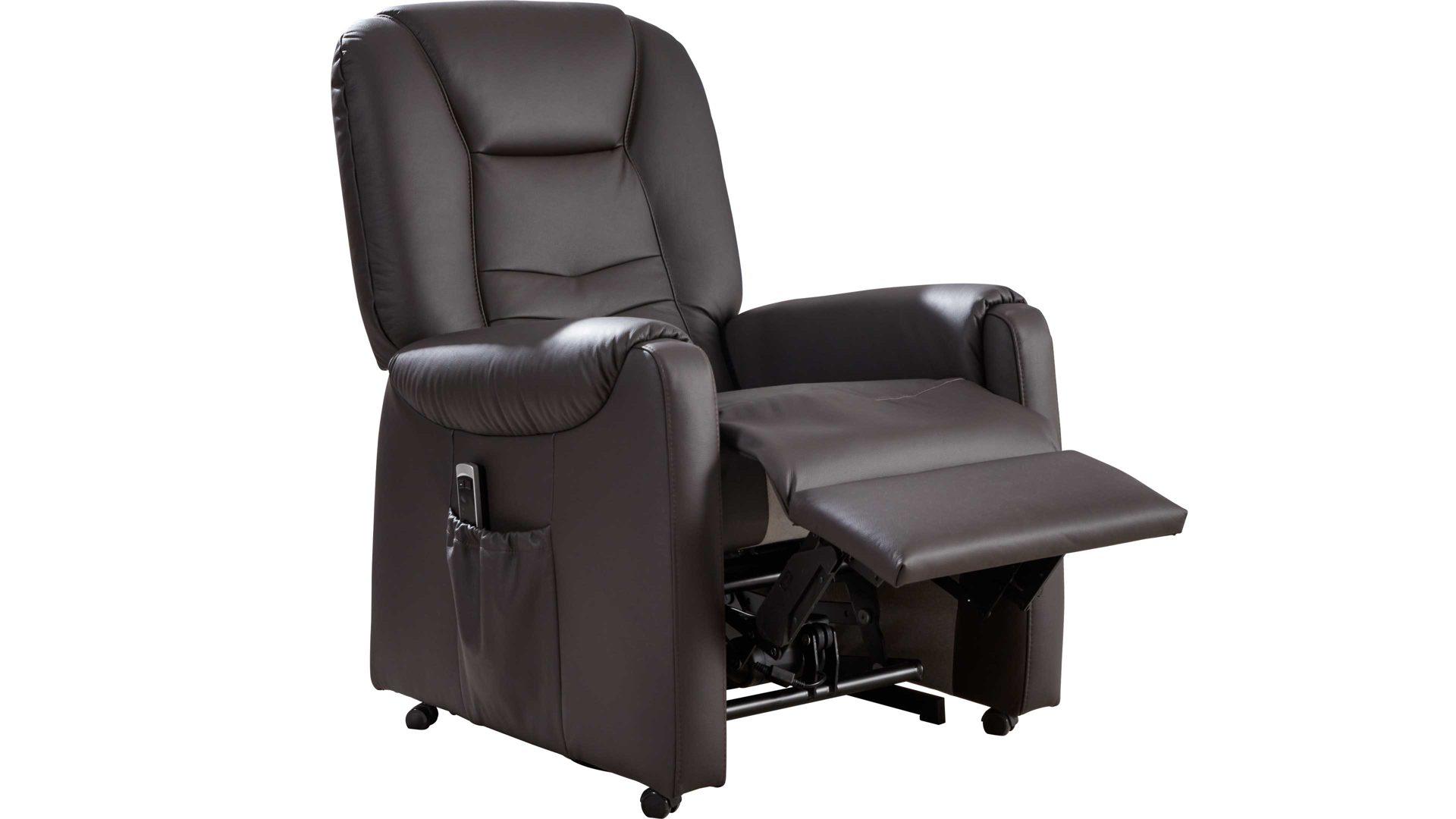 Überhaupt ermöglicht der Sessel Carlos Entspannung vom Feinsten. Er verfügt über zwei Motoren, mit denen sich die standardmäßige Sitzposition getrennt zur TV- und Liegeposition verstellen lässt. Zudem leistet der TV-Sessel bei Bedarf Aufstehhilfe. Ein weiteres funktionales Highlight ist die manuelle Kopfteilverstellung - für eine effektive Entlastung des Kopf-Nacken-Bereichs. In der praktischen Seitentasche finden beispielsweise die Fernbedienungen für TV und Medienplayer Platz. Der Sessel selbst wird bequem mittels Handschalter bedient.