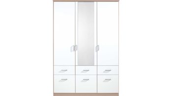 Der Kleiderschrank bietet mit seiner Größe von ca. 181 x 199 x 58 cm (BxHxT) viel Stauraum für Ihre Garderobe. Hinter den Türen und in den Schubfächern können Sie viel Wäsche unterbringen. Die geradlinigen Griffe runden das dezente Design ab. Der Schrank harmoniert mit modernen sowie mit klassischen Möbeln. Weitere Artikel dieser Serie erhalten Sie mit der Produktunmmer 698201 - mit nur einem Klick zum ganzen Programm.
