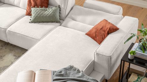 die Rückenlehne lässt sich durch leichtes Anheben nach vorn ziehen und verändert so die Sitztiefe um bis zu 15 cm