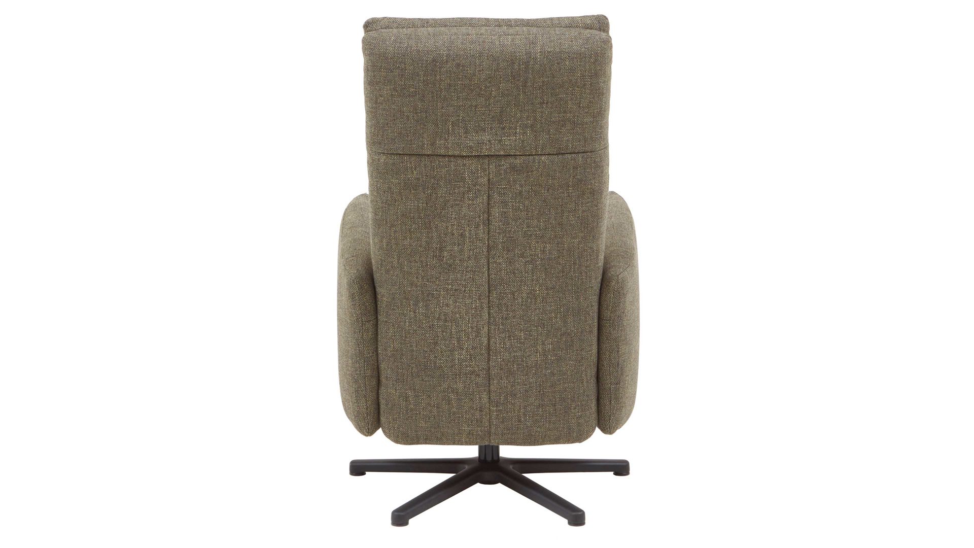 Dieser Relax-Drehsessel aus dem Polsterprogramm New Jersey zeichnet sich durch seine moderne und gemütliche Ausstrahlung, eine exzellente Material- und Verarbeitungsqualität sowie extra hohen Sitzkomfort aus. Der trendige und spezielle olivfarbene Stoffbezug sorgt für ein edles Design. Ein mattschwarzer Metall-Sternfuß rundet die Optik stimmig ab und trägt überdies zur Stabilität des attraktiven TV-Sessels bei. Einen gelungenen Akzent setzt die gesteppte Rückenlehne. Die Sitzfläche ist glatt bezogen.
