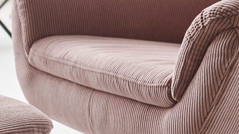 rosé Feincordbezug und mattschwarzer sternförmiger Metallfuß