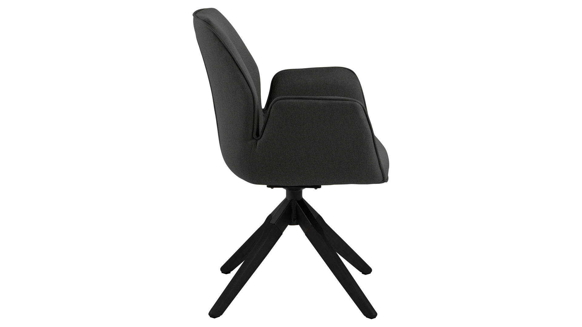 Dabei harmoniert der Armlehnstuhl in seiner sanften Formensprache mit zahlreichen Einrichtungsstilen: Dafür sorgt der dunkelgraue Stoffbezug Town 33, der die gesamte Sitzschale inklusive der bequemen Armlehnen weich umhüllt. Die schwarz lackierten Holzfüße fließen stimmig in das Gesamtbild ein. Ob als Esszimmerstuhl oder für erholsame Momente im Lounge-Bereich und Wohnzimmer: Das Modell Aura ist der perfekte Allrounder.