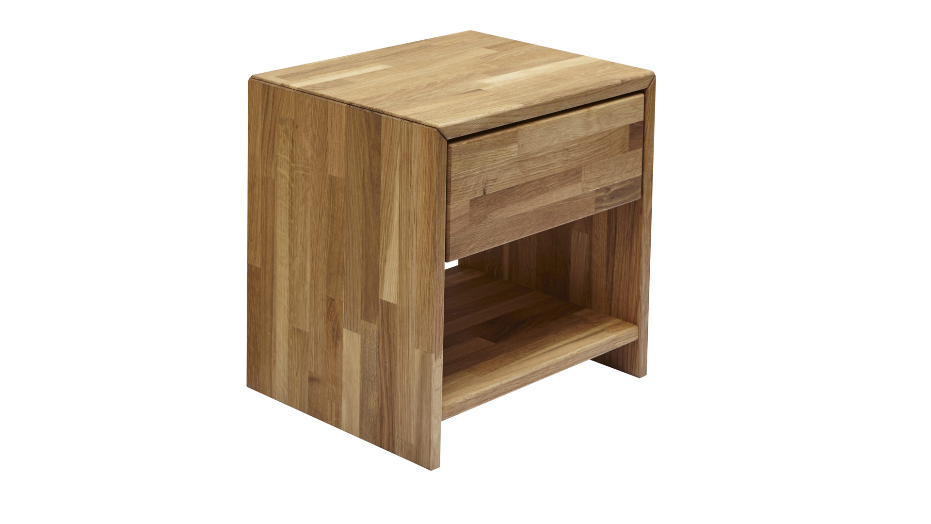 Dieses Beistellmöbel bringt Ordnung in Ihre persönliche Wohlfühloase und komplettiert ein passendes Bett ganz wunderbar. Das Nachtschränkchen besteht aus geölter Wildeiche und ist stabverleimt. Eine Schublade und ein Ablageboden bieten viel Platz für Bücher, Taschentücher oder die Brille. Auf die obere Fläche stellen Sie zum Beispiel eine Nachttischlampe oder einen Wecker, um die wichtigsten Utensilien stets griffbereit zu haben.