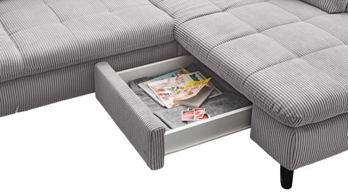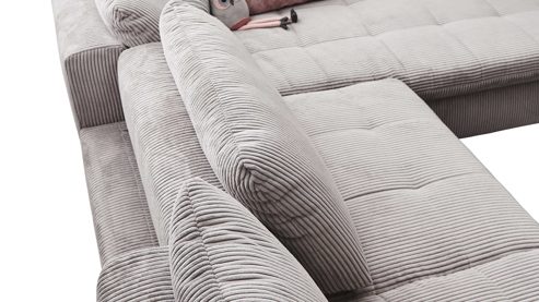 naturfarbener Cordbezug und biancofarbene Holzfüße