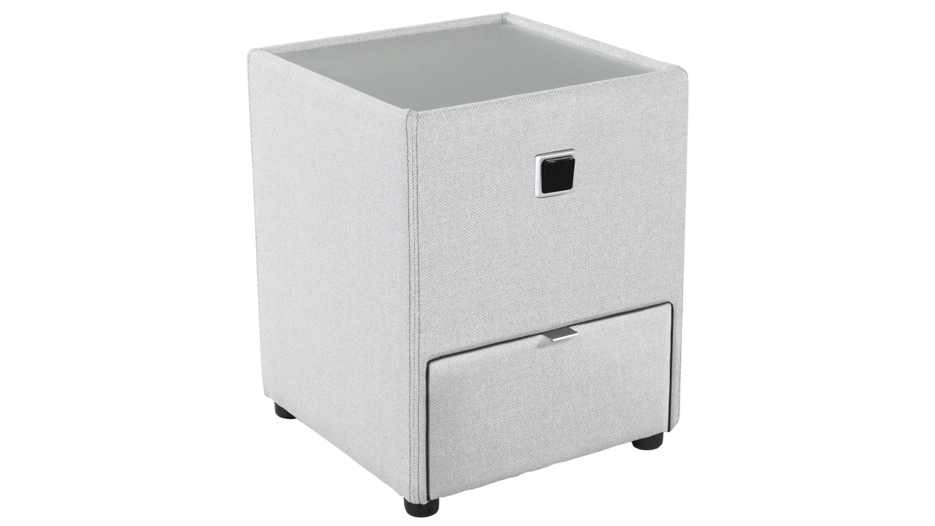 Mit kompakten Maßen von ca. 43 x 53 x 45 cm (BxHxT) passt die Nachtkommode mit indirekter Beleuchtung wunderbar neben Ihr Bett. Die Ablagefläche aus Plexiglas schafft mit dem Stoffbezug einen angesagten Materialmix. Der Nachtschrank kommt inklusive Leuchtmittel zu Ihnen nach Hause, wo Sie Ihn als Lichtquelle direkt neben dem Doppelbett aufstellen.