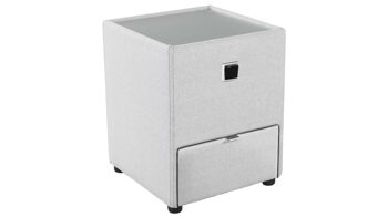 Als essentielles Aufbewahrungsmöbel besticht die Kommode in Ihrem Schlafraum mit einer geradlinigen Optik und praktischen Funktionen. Außergewöhnliche Haptik: Die Nachtkonsole ist mit einem hellgrauen Bezug rundum stoffbezogen und dadurch ein echter Hingucker. Auf dem Nachtschrank legen Sie beispielsweise ein Buch oder Ihre Lesebrille ab, während Sie in der einen Schublade weitere Utensilien wie Taschentücher oder Schmuck verstauen.