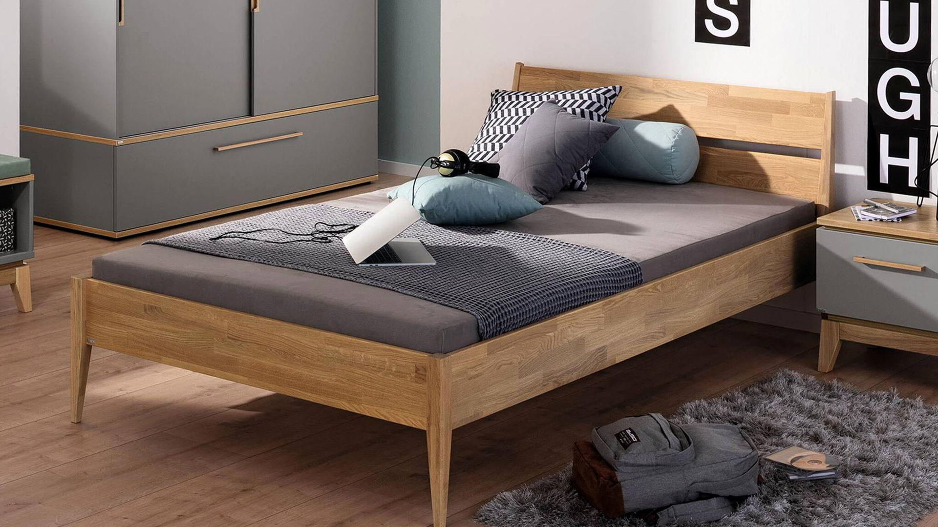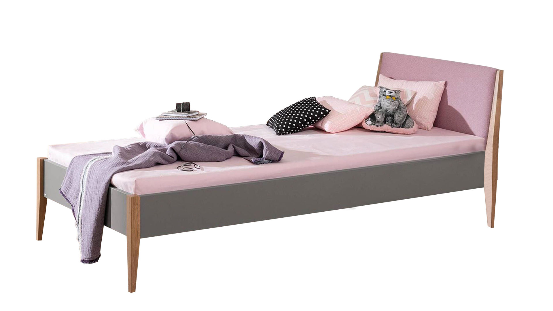 Funktional überzeugt das erstklassig verarbeitete Jugendbett mit der großzügigen Liegefläche von ca. 120 x 200 cm (BxL). Der Lattenrahmen und die Matratze sind nicht im Preis enthalten, können aber separat dazubestellt werden. Auf ca. 127 x 80 x 214 cm (BxHxL) belaufen sich die Maße des Jugendzimmerbettgestells.