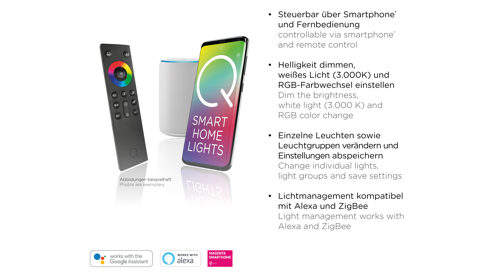mit Funk-Fernbedienung, Sprach- oder Appsteuerung schaltbarer RGB-Farbwechsler