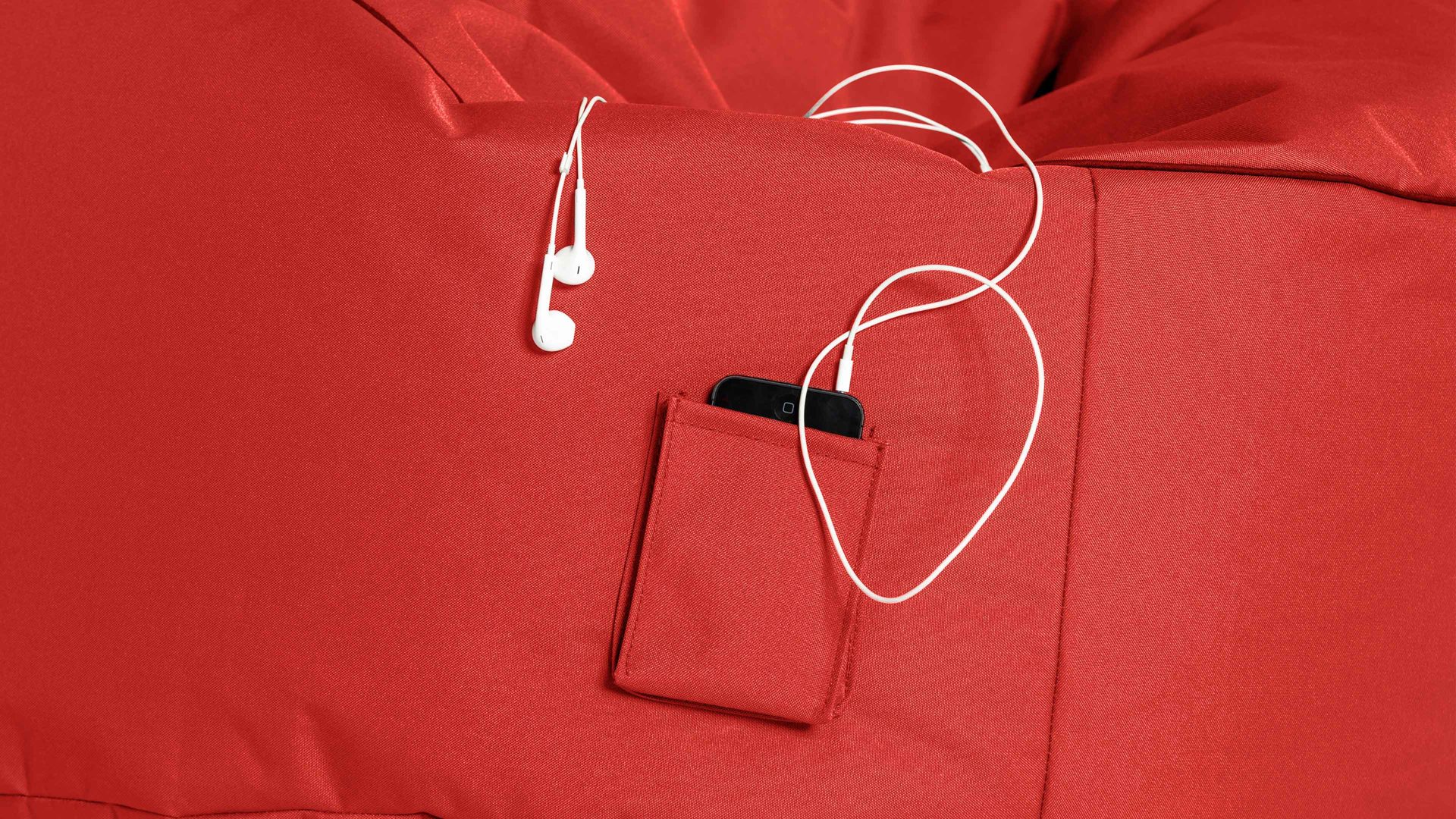 Der rote Sitzsack-Sessel Made in Germany ist genau das richtige Sitzmöbel zum Lesen, Entspannen oder zum Fernsehen.