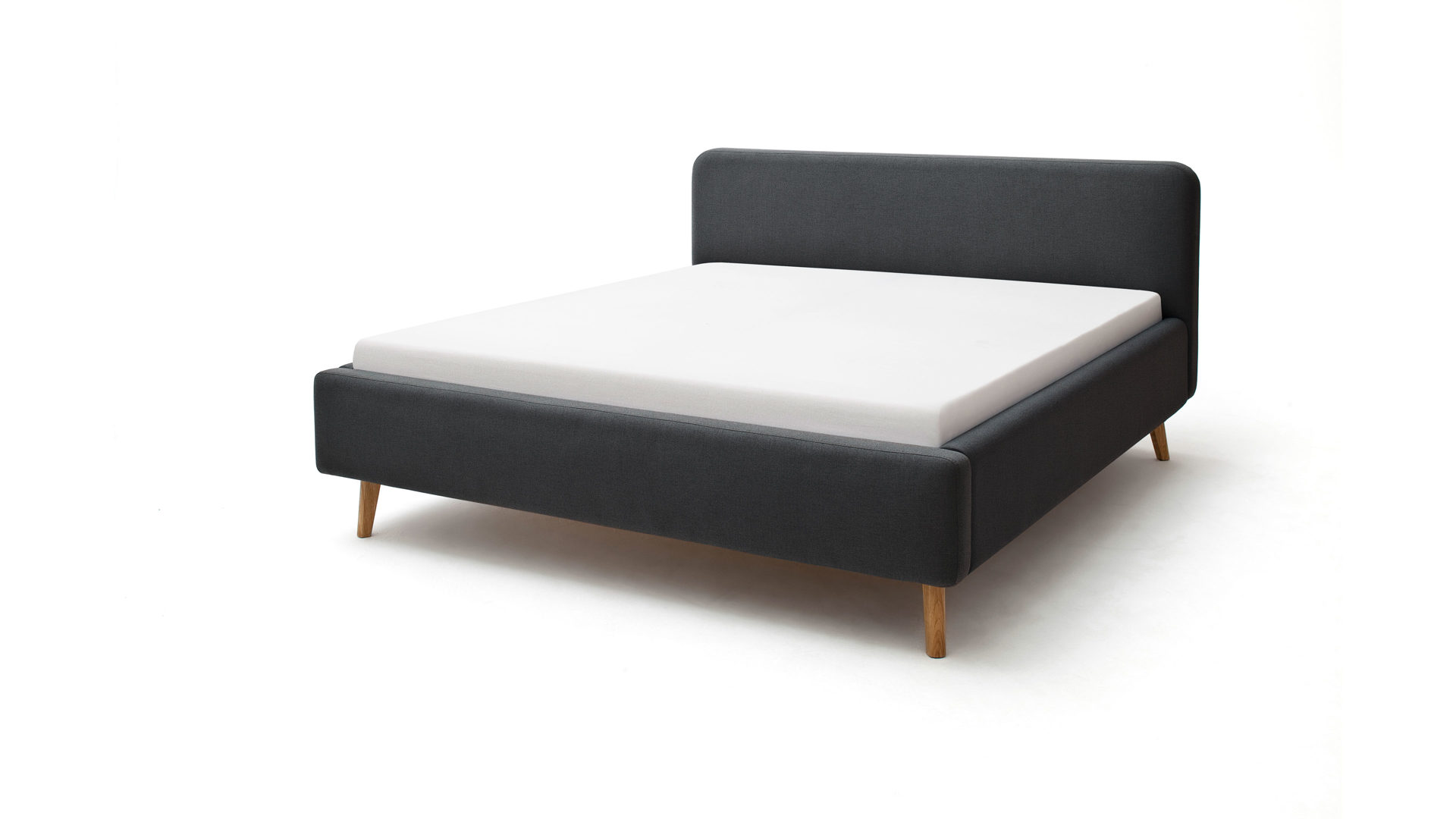 anthrazitfarbenes Flachgewebe Aspen 96 & Holzfüße - Liegefläche ca. 180 x 200 cm