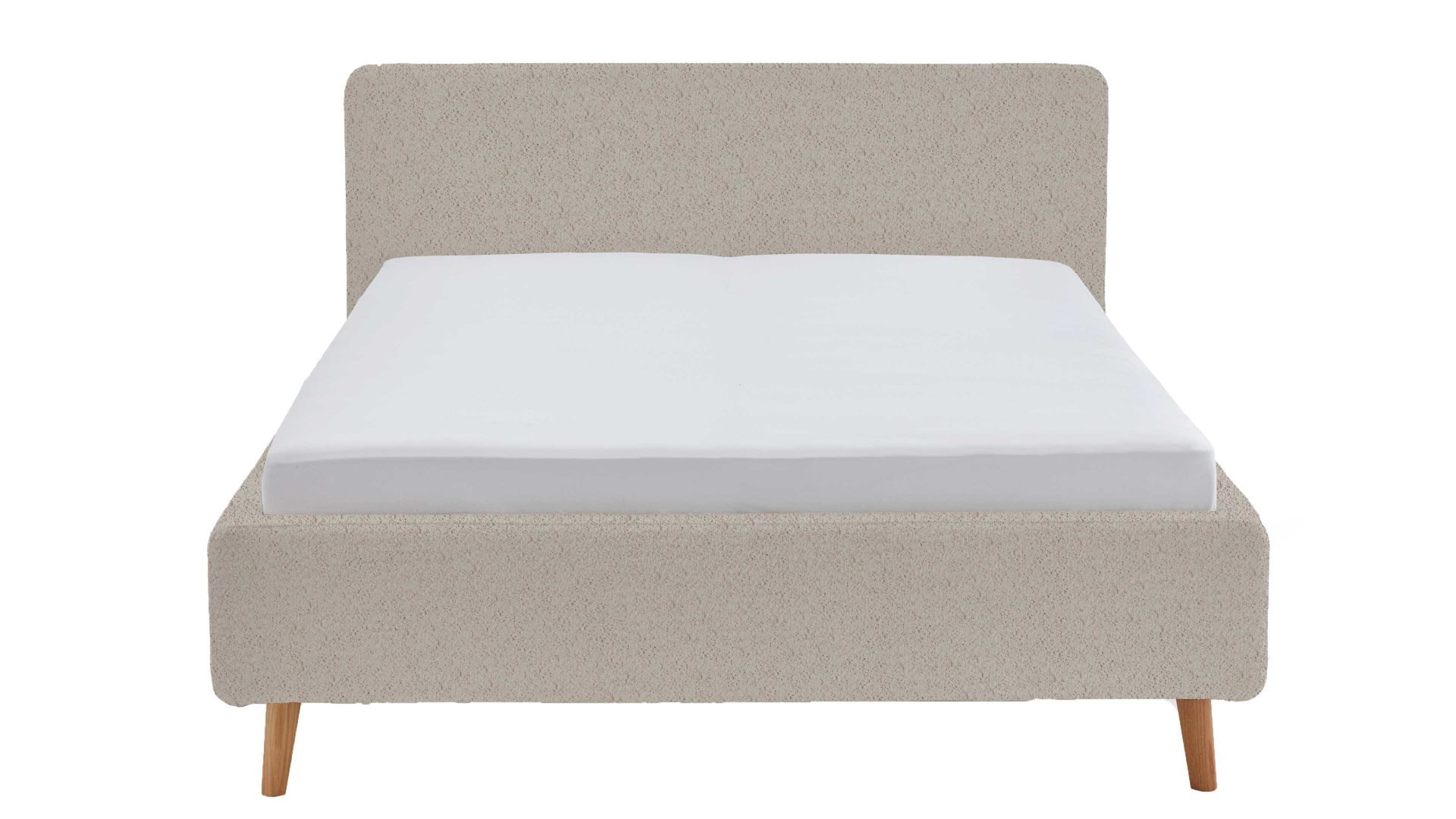 Das Polsterbettgestell Mattis begeistert durch die elegante Optik sowie die hervorragende Material- und Verarbeitungsqualität. Es kombiniert einen beigefarbenen Boucle-Bezug mit eichefarbenen Holzfüßen. Sowohl die Bettseiten als auch das Polsterkopfteil sind glatt bezogen. Letzteres lädt Sie ein, sich anzulehnen, wenn Sie abends im Bett vor dem Schlafen noch fernsehen oder in einem Buch lesen.
