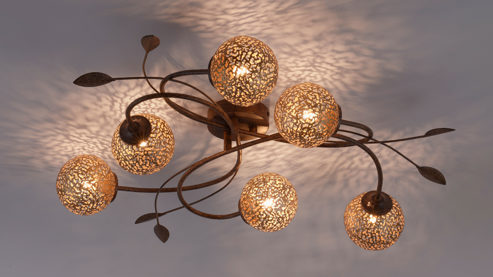 Die Paul Neuhaus LED-Deckenleuchte Greta leuchtet Ihren Wohnbereich wunderbar aus und fungiert zugleich als ansprechendes Dekoelement. Gefertigt aus rostfarbenem Metall in Kombination mit goldfarbenen Lampenschirmen beeindruckt die raffinierte Leuchte gleich auf den ersten Blick. Statten Sie die Deckenlampe einfach mit sechs G9-Leuchtmitteln mit je 40 Watt aus, die sich für die Energieeffizienzklasse A bis G eignen, und nehmen Sie das Lampenmodell direkt in Betrieb.