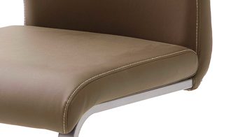 Das komfortable Sitzmöbel in Braun besticht im zeitlosen sowie geradlinigen Design und ist die perfekte Sitzgelegenheit für Ihren einladenden Essbereich. Sowohl in der Küche als auch im Esszimmer sitzen Sie und Ihre Gäste äußerst bequem auf dem Freischwinger, der mit pflegeleichtem, braunem Kunstleder und einem stabilen, gebürsteten Flachrohrgestell aus Edelstahl ein Schwingstuhl für die ganze Familie ist. Dank der praktischen Griffmulde in der Rückenlehne versetzen Sie den Polsterstuhl einfach dorthin, wo Sie ihn benötigen.