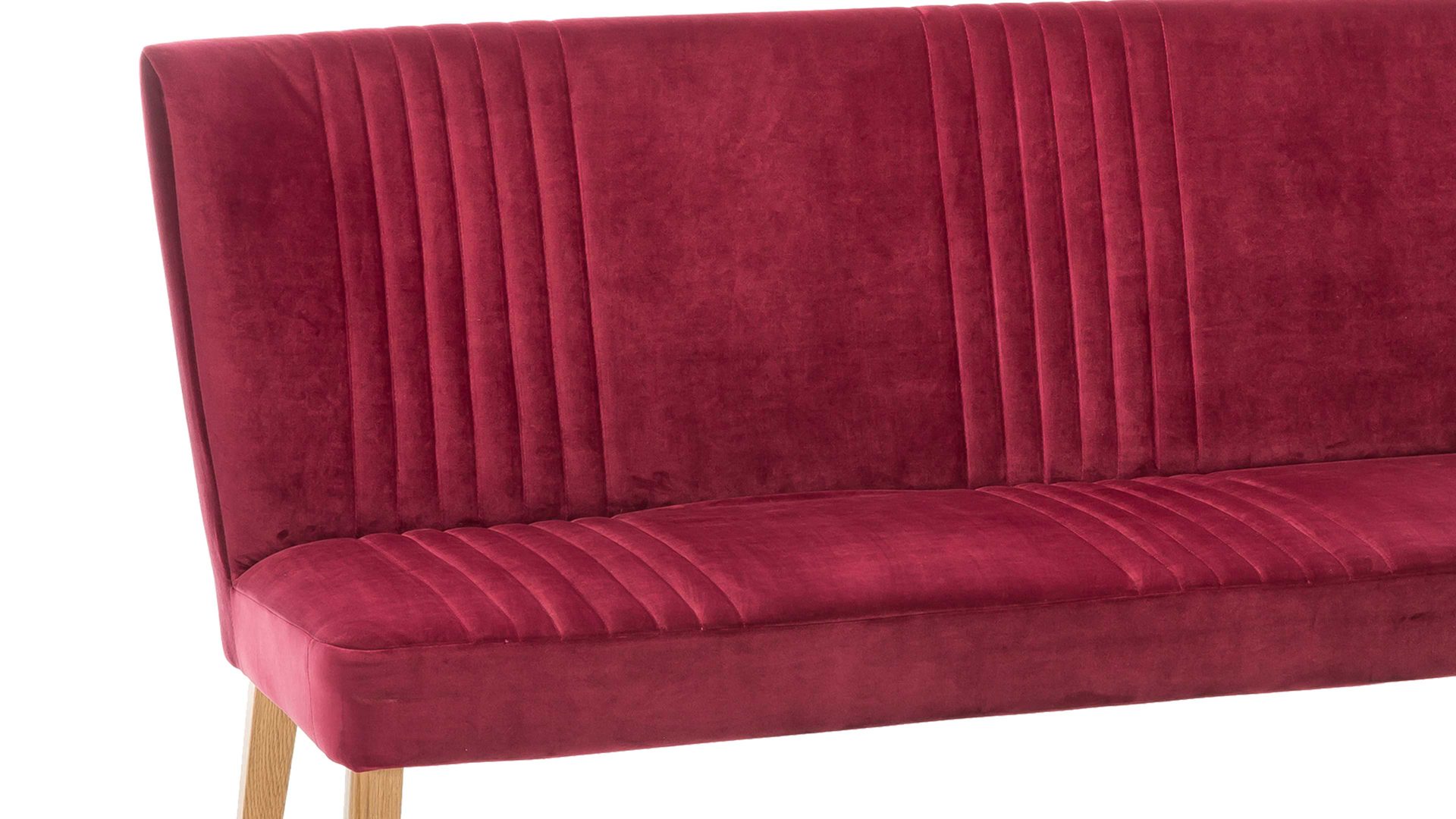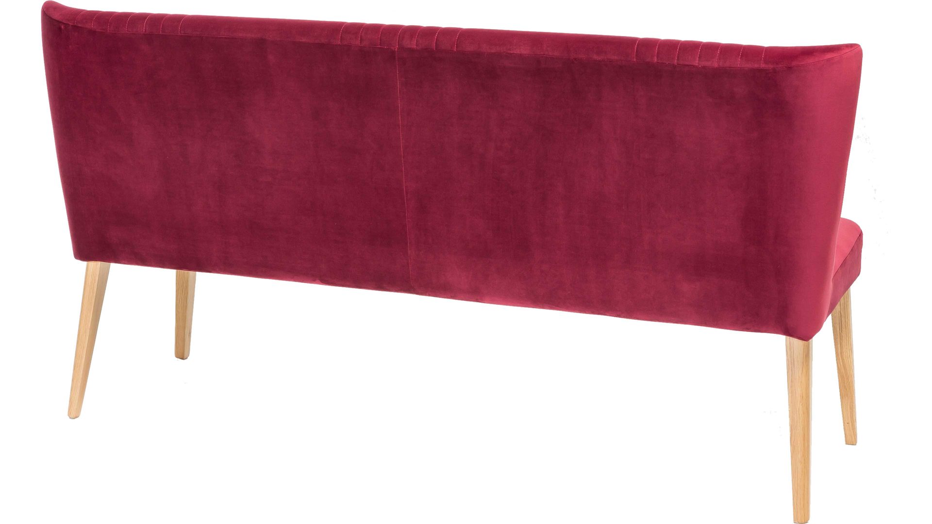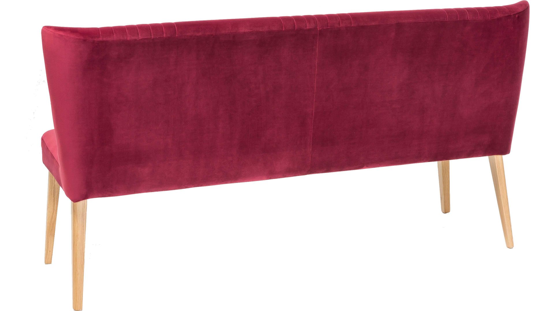 Mit dieser Polsterbank mit chiantifarbenem Bezug in Samtoptik erhalten Sie eine Sitzbank in Retro-Optik. Die vier Eichenholzfüße ergänzen den roten Bezug wunderbar, der zudem mit raffinierten Steppnähten auf Sitz und Rücken begeistert. In Ihrem Gästezimmer oder als Garderobenöbel in einem großen Flur nutzen Sie diese Polsterbank als Sitzmöbel oder Ablage für Kleidung. Die überzeugenden Maße von ca. 162 x 92 x 62 cm (BxHxT) sind kompakt und handlich.