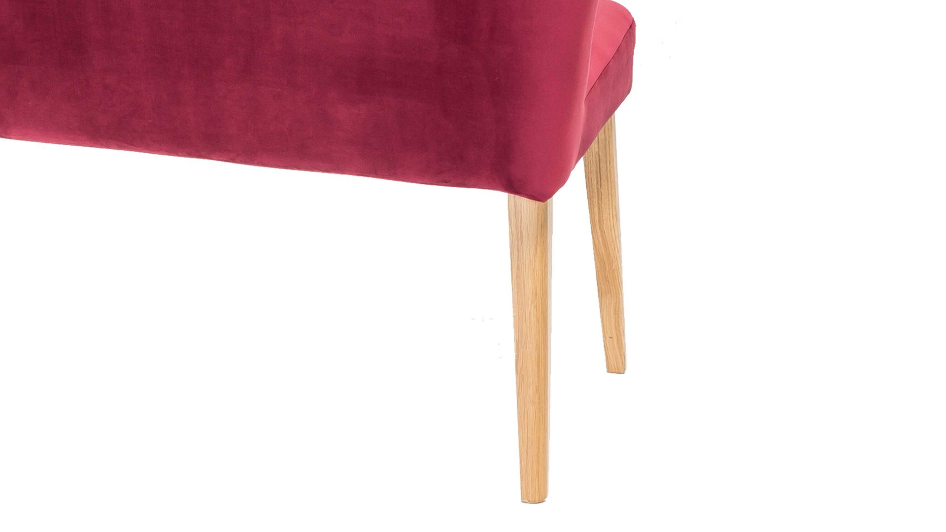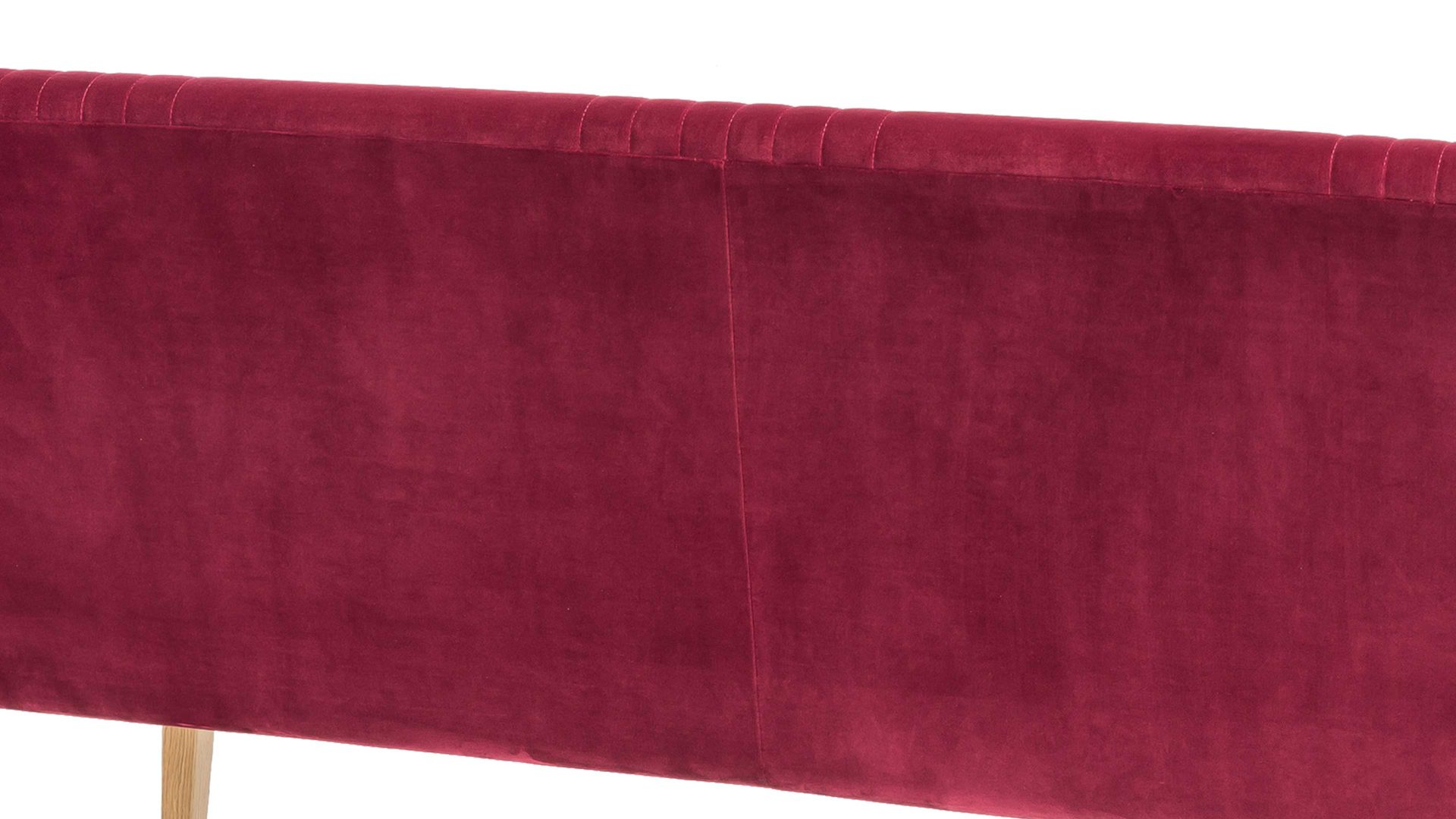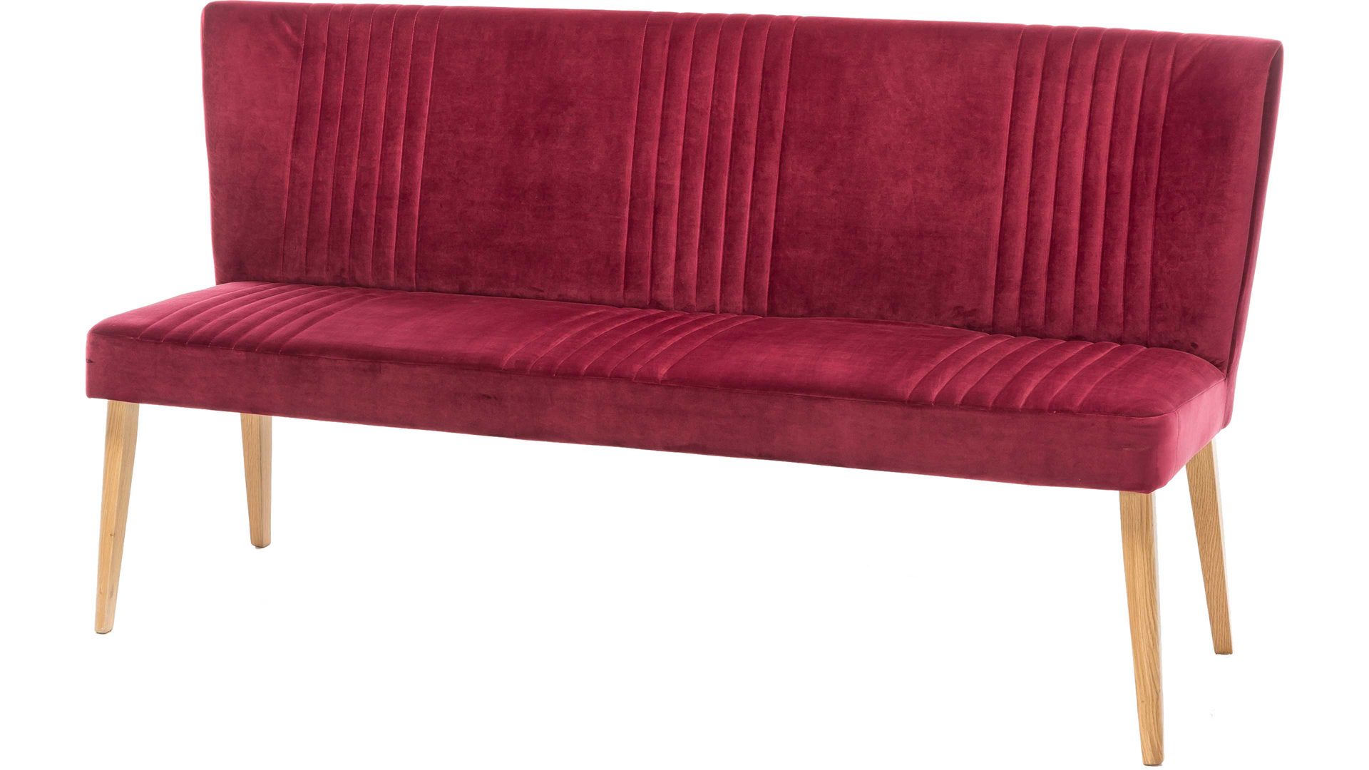 Mit dieser Polsterbank mit chiantifarbenem Bezug in Samtoptik erhalten Sie eine Sitzbank in Retro-Optik. Die vier Eichenholzfüße ergänzen den roten Bezug wunderbar, der zudem mit raffinierten Steppnähten auf Sitz und Rücken begeistert. In Ihrem Gästezimmer oder als Garderobenöbel in einem großen Flur nutzen Sie diese Polsterbank als Sitzmöbel oder Ablage für Kleidung. Die überzeugenden Maße von ca. 162 x 92 x 62 cm (BxHxT) sind kompakt und handlich.