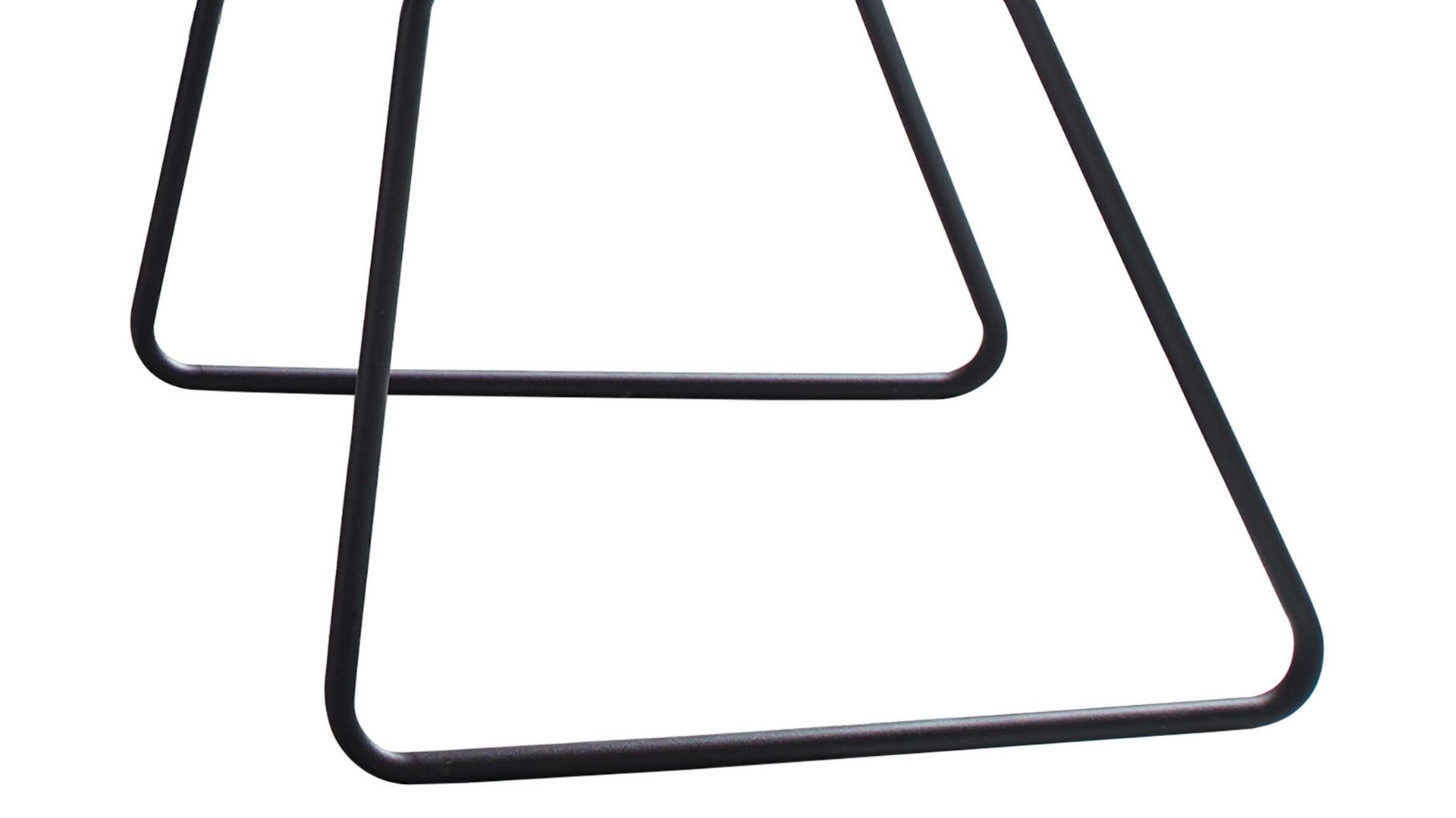 Er verfügt über einen moccafarbenen Stoffbezug, der mit nahezu jedem Einrichtungsstil harmoniert. Ein schwarzes Eisen-Kufengestell verleiht ihm zuverlässige Stabilität. Bei Maßen von ca. 47 x 83 x 41 cm (BxHxT) weist der Esszimmerstuhl eine Sitzhöhe von ca. 48 cm sowie eine Sitztiefe von ca. 48 cm auf.
