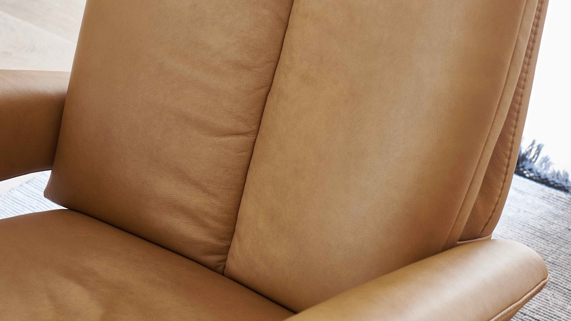 Er kombiniert einen edlen senffarbenen LongLife-Lederbezug samt Ton-in-Ton-Kontrastnaht mit einem puristisch-mattschwarz lackierten Metall-Sternfuß. Die Farben strahlen stilvolle Eleganz aus und harmonieren hervorragend miteinander. Darüber hinaus begeistert die hohe Qualität der Materialien: Das Leder ist enorm widerstandsfähig und langlebig und der robuste Metallfuß sorgt für die nötige Standfestigkeit und Stabilität des TV-Sessels.