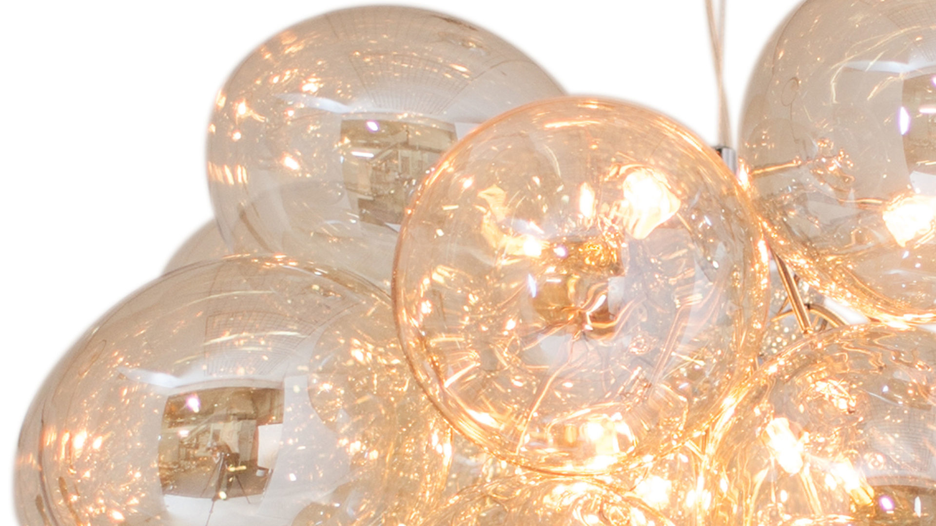 amberfarbener Glaslampenschirm aus 37 Kugeln