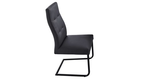 dunkelgrauer Stoffbezug in Lederoptik, kombiniert mit mattschwarz lackiertem Metall
