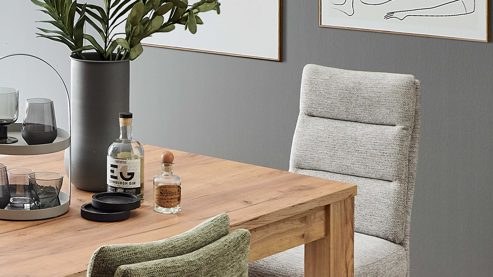 platingrauer Webstoffbezug, kombiniert mit mattschwarzem Eisen-Rundrohr