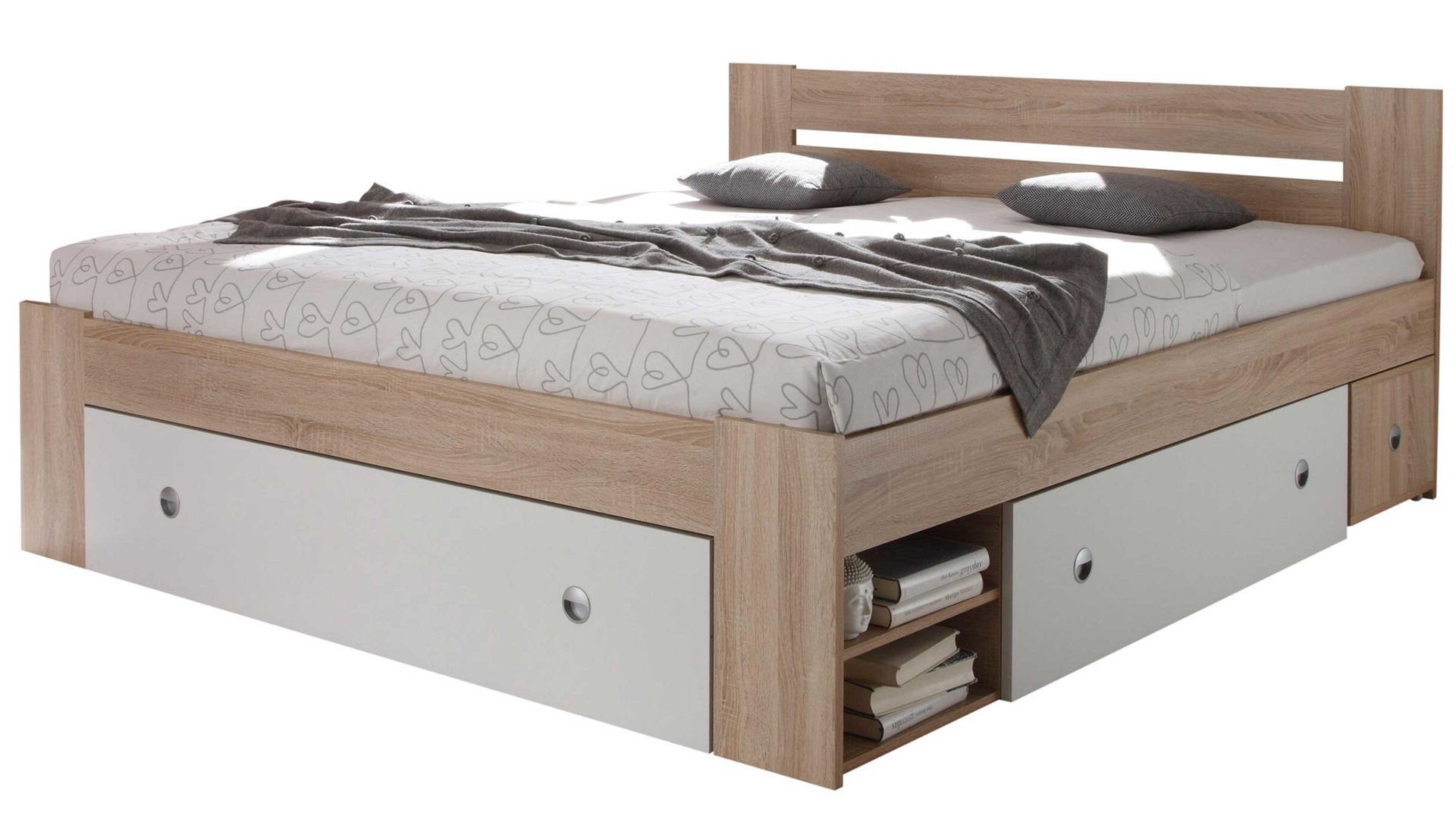 Dieses Funktionsbettgestell zeichnet sich durch eine erstklassige Verarbeitung, stilvolle Designmerkmale und eine hohe Funktionalität aus. Es präsentiert sich in Sonoma-Eiche-Nachbildung - mit gelungenen weißen Akzenten. Die hellen, perfekt aufeinander abgestimmten Farbtöne verleihen dem Einzelbettgestell eine warme Ausstrahlung mit natürlichem Charme. Dank der schlichten Nuancen und klassischen Formensprache harmoniert das Bett mit verschiedensten Einrichtungskonzepten. Puristisch-alufarbene Griffe runden das Gestell passend ab.