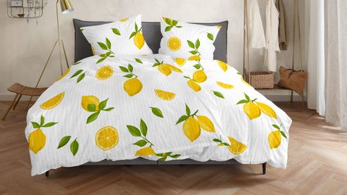 zweiteilig, ca. 135 x 200 cm - Gelb Weiß Zitrusfrucht