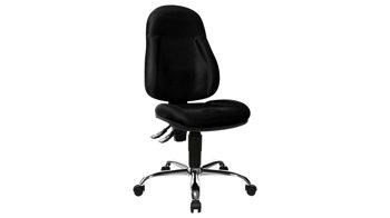 Der pflegeleichte schwarze Bezug, den es wahlweise auch in anderen Farben gibt, und das edel glänzende Aluminium-Fußkreuz setzen einen professionellen Akzent in Ihrem Arbeitsbereich. Die Rückenlehne mit atmungsaktivem Netzbezug und seitlich aufgepolsterten Backen für optimalen Seitenhalt ist dank Rastertechnik individuell höhenverstellbar.