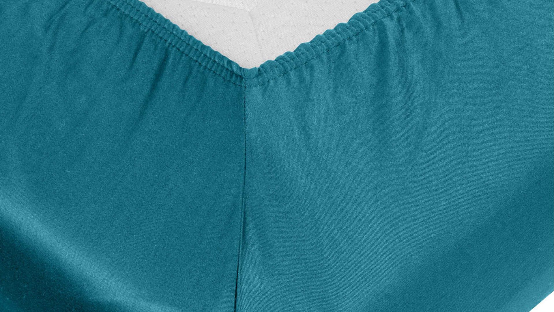Uni-Satin-Spannbettlaken | petrolfarbener Baumwollsatin | Rundumgummizug | gute Passform | leichtes Aufziehen und kein Verrutschen dank Rundumgummizug | geeignet für eine Matratzenhöhe von bis zu ca. 20 cm | 100% mercerisierte Baumwolle | reaktiv gefärbt | einlaufsicher | waschbar bis 60 Grad | trocknergeeignet | bügelarm | Ökotex geprüft | Maße ca. 150 x 200 cm (BxL) | viele Farben und Größen erhältlich