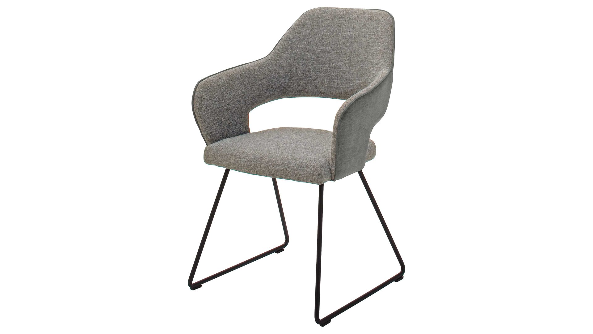 Als Basis fungiert ein anthrazitfarben lackiertes Kufengestell. Es gewährleistet die nötige Robustheit und Stabilität. Die Außenflächen sind mit melangefarbenem Feingewebe, die Innenflächen mit Flachgewebe im Farbton Melange bezogen. Durch die klassisch-elegante Farb- und Materialgestaltung lässt sich der Stuhl wunderbar mit den verschiedensten Einrichtungsstilen kombinieren.
