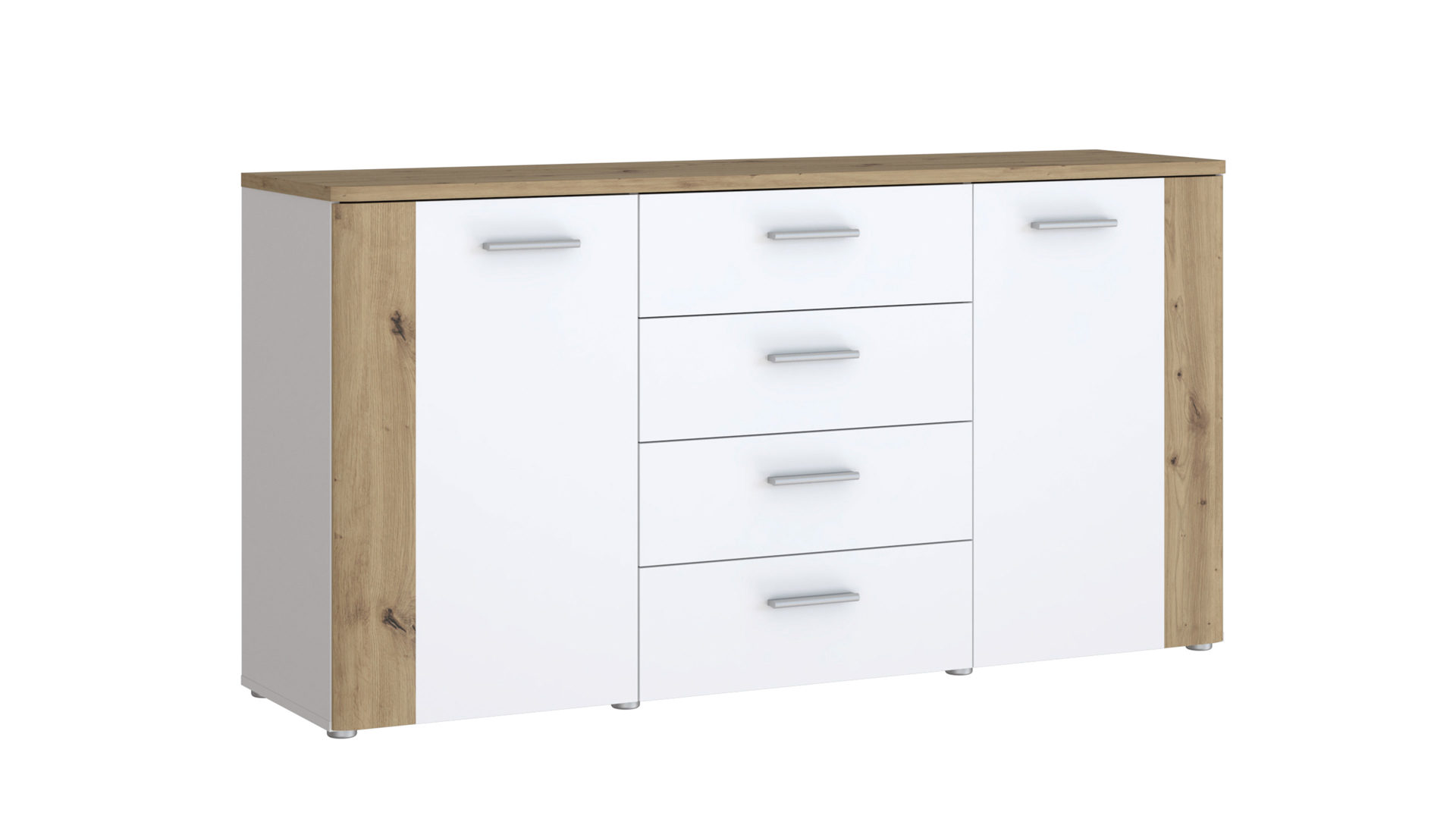 Sandeiche & Weiß – zwei Türen, drei Schubladen