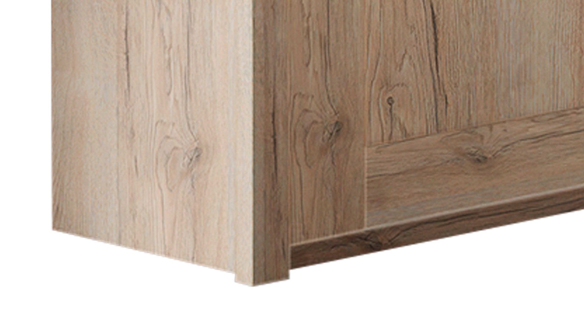 Diese ansprechende Kombikommode wertet Ihr Schlafzimmer optisch wie funktional auf. Sie begeistert mit ihrem klassisch-eleganten Design, das Landhaus-Flair gepaart mit antikem Charme mit sich bringt. Der Schrank präsentiert sich in heller San-Remo-Eiche-Nachbildung, die Wärme und Natürlichkeit ausstrahlt. Akzentuierend wirken die dunklen Griffe. Sie verleihen der Kommode eine attraktive Tiefgründigkeit. Neben den visuellen Vorzügen bieten die erstklassig verarbeiteten Kunststoffoberflächen auch einen funktionalen Vorteil: Sie sind angenehm pflegeleicht.