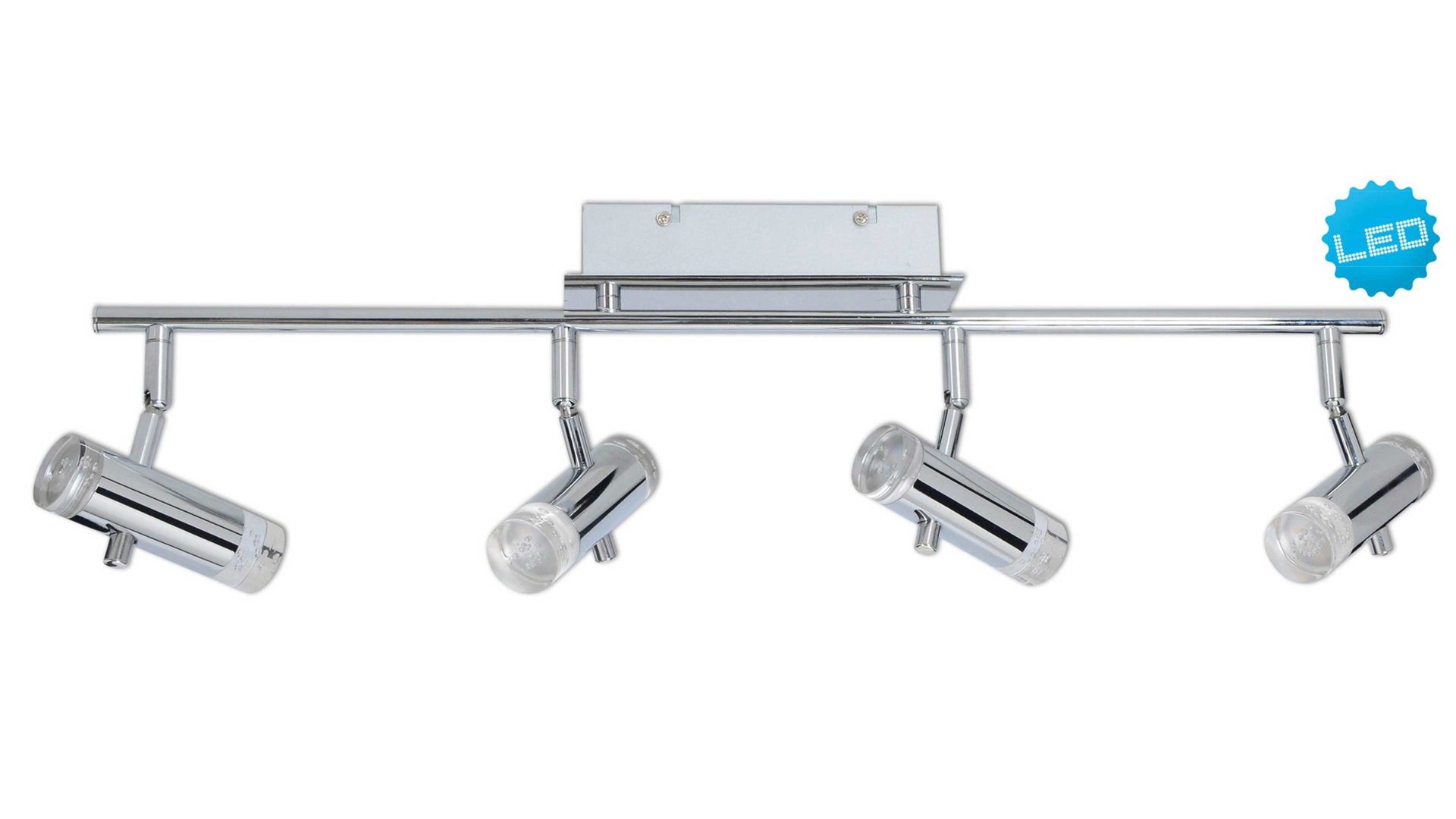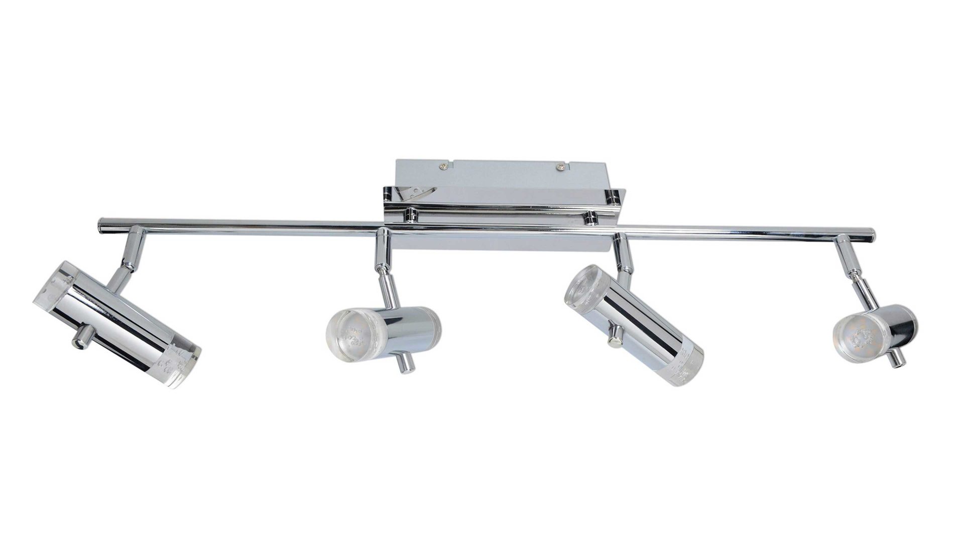 Er besteht aus verchromtem Metall sowie klarem Acrylglas. Somit ist die Deckenleuchte, die vier Spots aufweist, enorm widerstandsfähig, stabil und auch noch angenehm pflegeleicht.