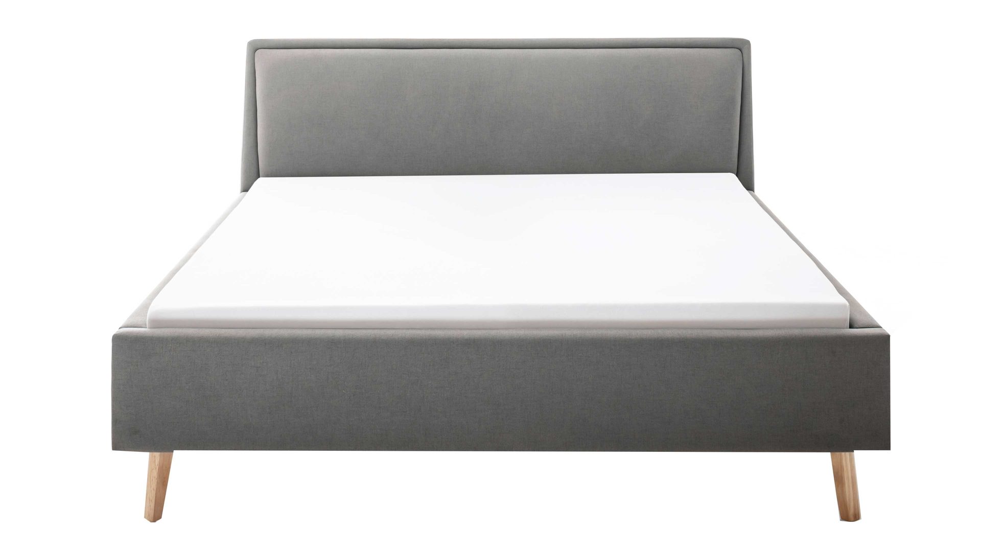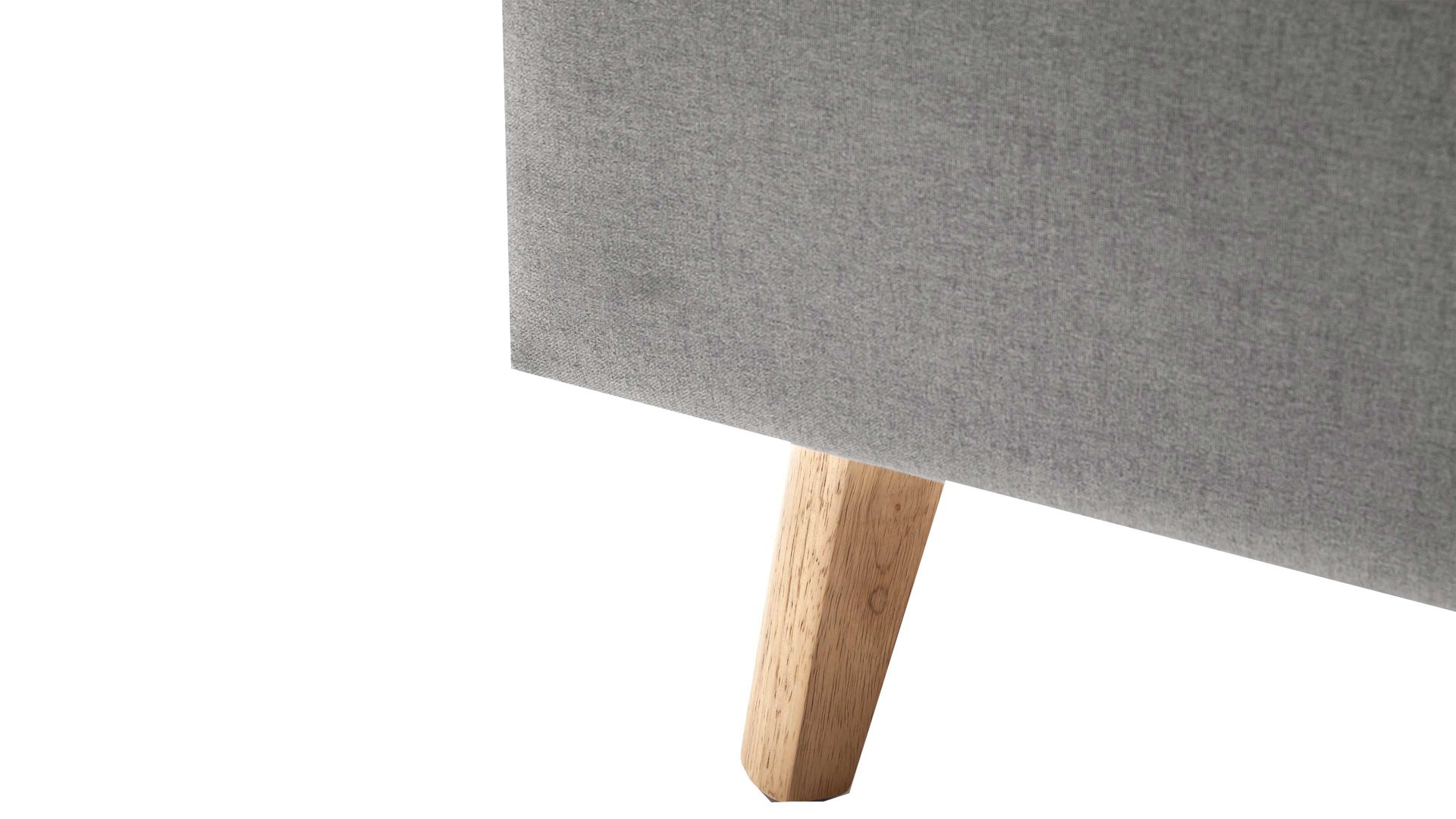 Das Polsterbettgestell Frieda mit Bettkasten verkörpert modernen Komfort. Mit dem hellgrauen Stoffbezug und den eichefarbenen Holzfüßen präsentiert es sich elegant und gemütlich designt. Die Bettseiten sind genauso wie das Polsterkopfteil glatt bezogen. Letzteres ist eine angenehm weiche Rückenlehne, wenn Sie abends im Bett vor dem Schlafen noch entspannt in Ihrem Buch lesen oder fernsehen möchten.