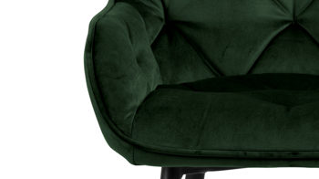 Dabei harmoniert der Tresenstuhl in seiner sanften Formensprache mit zahlreichen Einrichtungsstilen. Moderne Geradlinigkeit ergänzt er ebenso stimmig wie den beliebten Vintage-Trend. Auch farblich erlaubt der Hocker angenehme Freiheit beim Kombinieren: Dafür sorgt der waldgrüne Bezug Vic 68AC aus Samt, der die gesamte Sitzschale inklusive der bequemen Armlehnen weich umhüllt. Die rau pulverbeschichteten Metallfüße fließen in mattem Schwarz stimmig in das Gesamtbild ein.