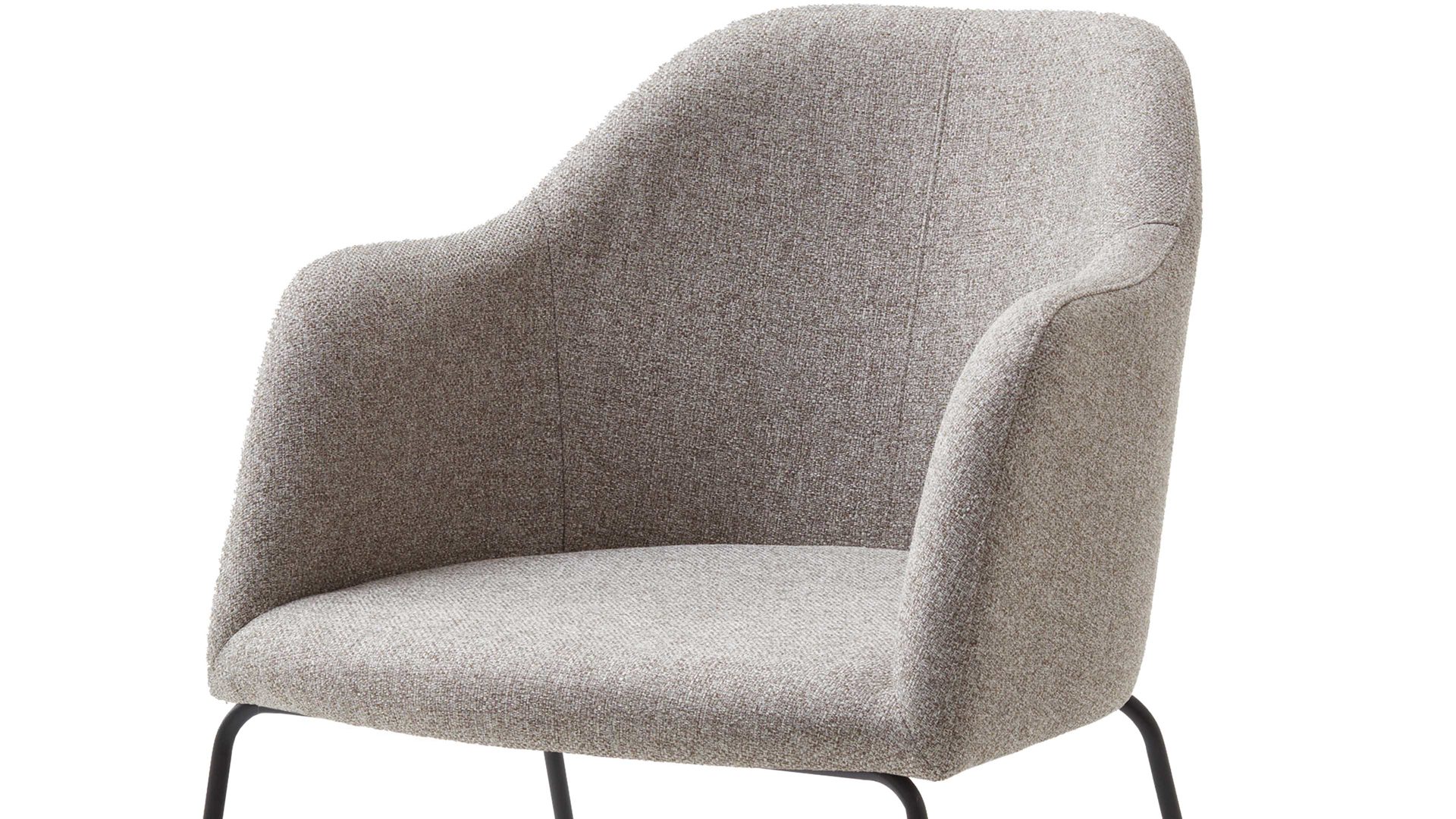 Darüber hinaus weiß er in puncto Komfort zu überzeugen. Ein schwarzes Stahldraht-Kufengestell bildet die robuste Basis. Das widerstandsfähige Material sorgt für die nötige Stabilität und die klassische Farbgebung bringt edles Flair in den Raum. Attraktiv abgerundet wird der Polsterstuhl durch den schlammfarbenen Webstoffbezug. Die trendige Farbe wirkt äußerst elegant und schafft durch die helle Nuance einen interessanten Kontrast zum Gestell. Einen feinen Akzent setzt die Steppnaht im Rücken des Schalensitzes.