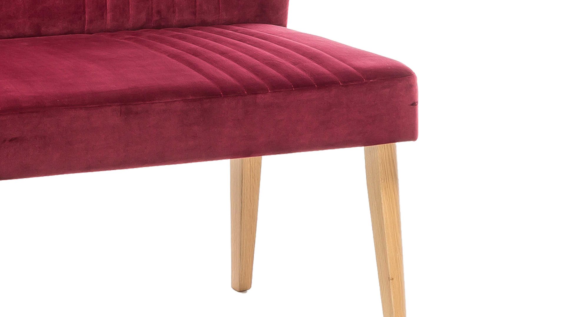 Mit dieser Polsterbank mit chiantifarbenem Bezug in Samtoptik erhalten Sie eine Sitzbank in Retro-Optik. Die vier Eichenholzfüße ergänzen den roten Bezug wunderbar, der zudem mit raffinierten Steppnähten auf Sitz und Rücken begeistert. In Ihrem Gästezimmer oder als Garderobenöbel in einem großen Flur nutzen Sie diese Polsterbank als Sitzmöbel oder Ablage für Kleidung. Die überzeugenden Maße von ca. 162 x 92 x 62 cm (BxHxT) sind kompakt und handlich.