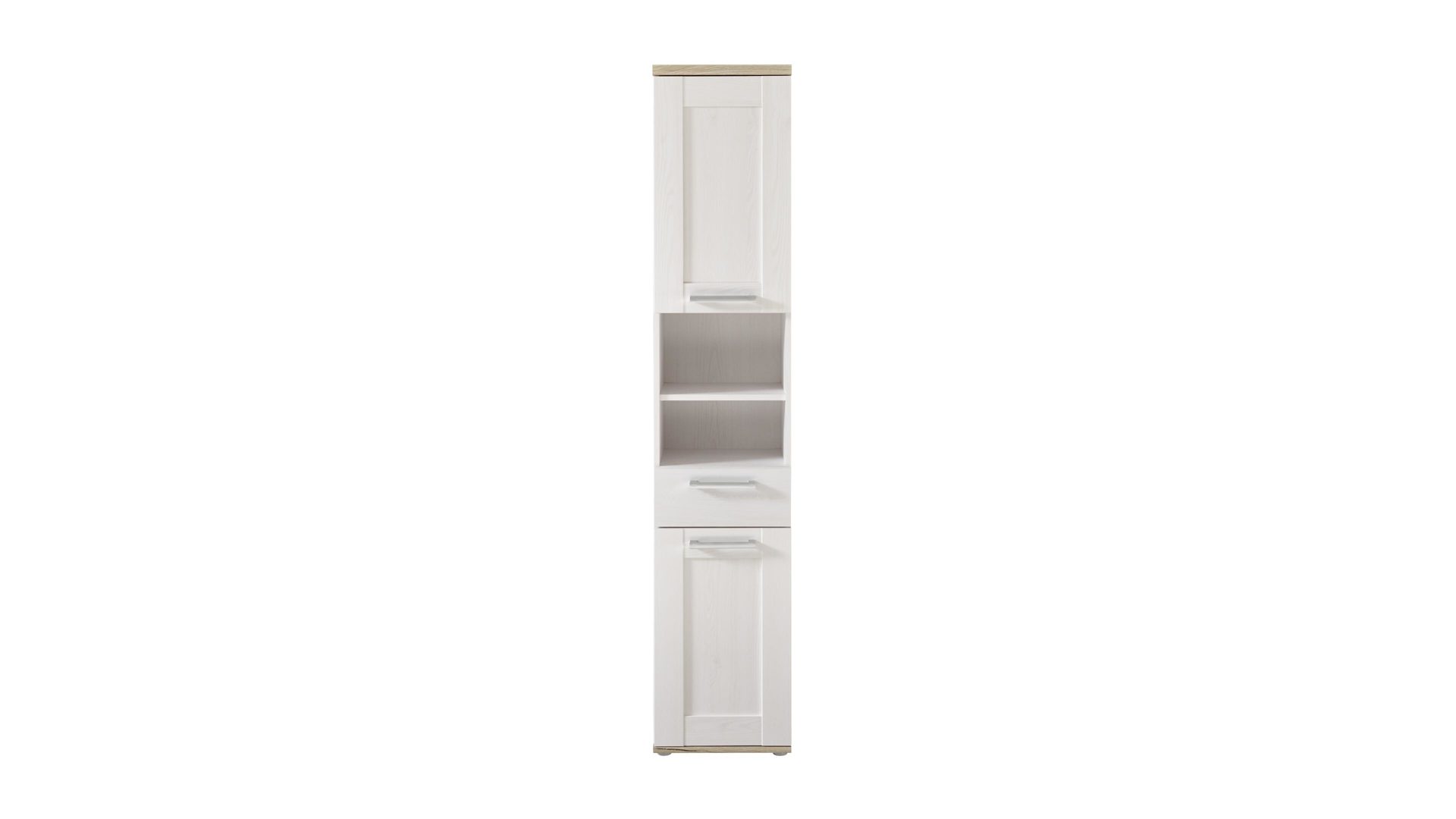 Die Maße des attraktiven Badezimmer-Hochschranks Romance belaufen sich auf ca. 39 x 190 x 33 cm (BxHxT). Im Shop erwarten Sie weitere Artikel der Serie mit der Produktnummer 492716-236, die harmonische Ergänzungen zum Hochschrank bilden.