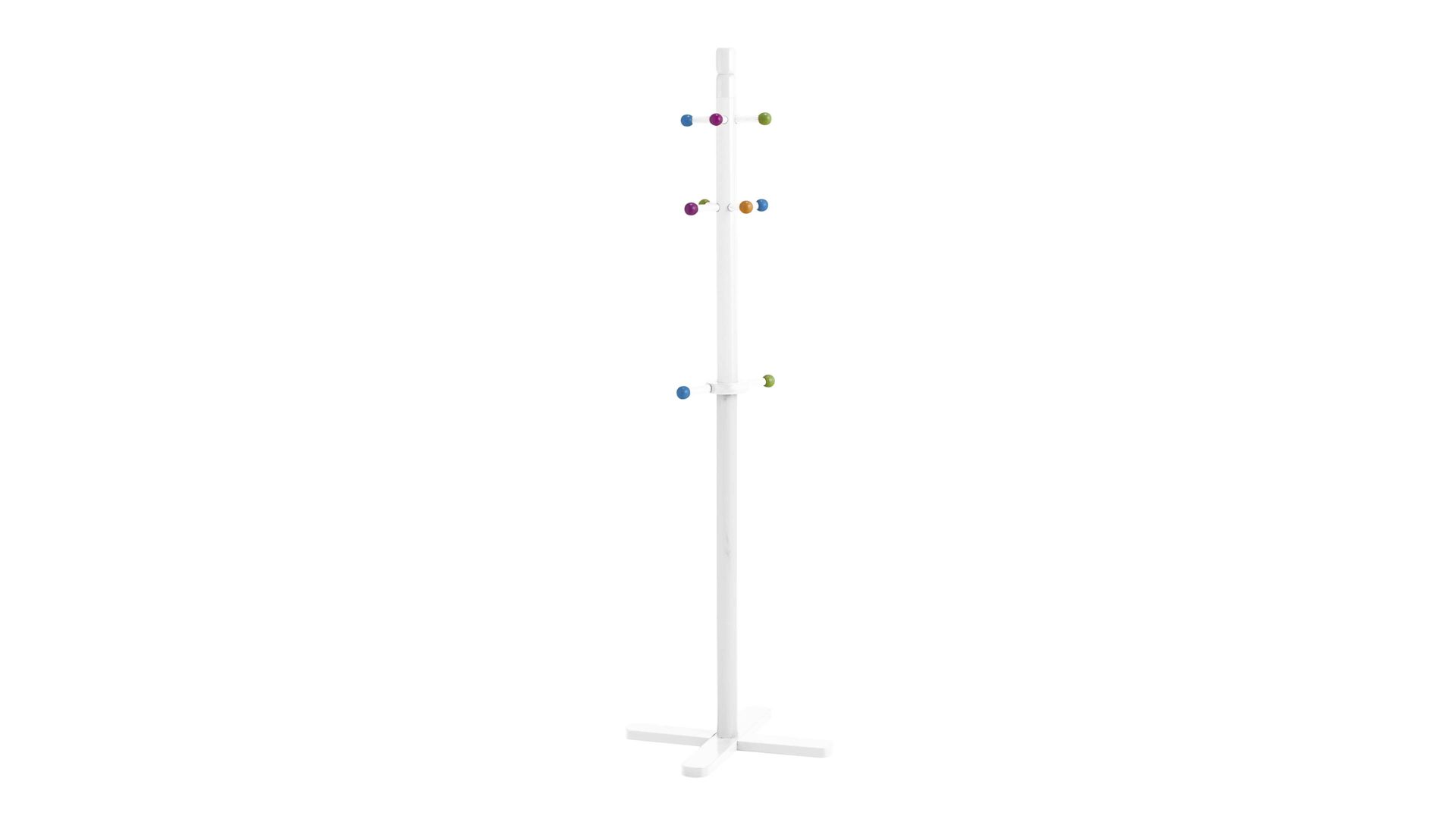 An zehn farbenfrohen Haken finden Ihre Kinder an diesem Kleiderständer Platz, um Mützen, Jacken, Rucksäcke und alles andere unterzubringen, was sonst oftmals unordentlich auf dem Boden landet. Mit bunten Akzenten, aber einem generell schlichtem, weißem Design ist die Garderobe zum einen ein kindgerechter Blickfang zum anderen aber auch mit vielen anderen Möbeln kombinierbar.