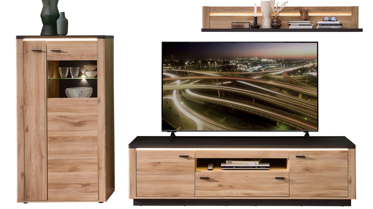 Wohnzimmer Serie Tina - Wohnwand mit Beleuchtung