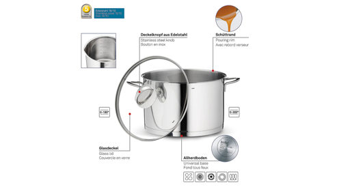| Materialeigenschaft: | glänzend rostfrei backofenfest formstabil pflegeleicht spülmaschinengeeignet | |
