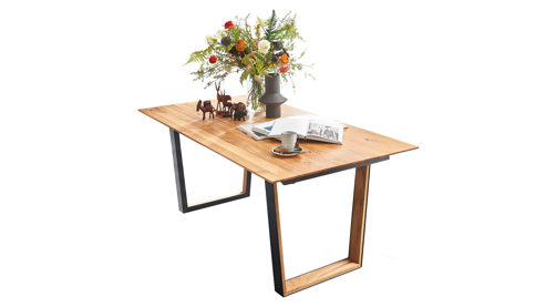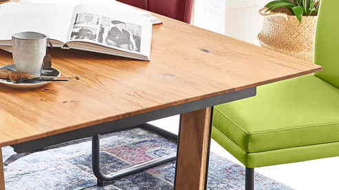 zusammenstellbare Esstische in zwei Größen, mit unterschiedlichen Gestellen, mit und ohne Funktion und in verschiedenen Holzarten wählen