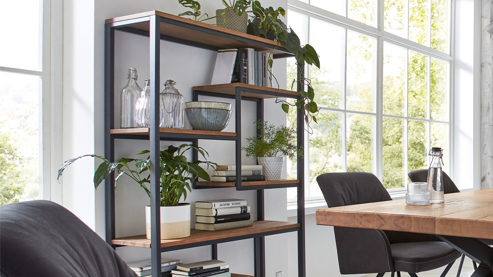 Das erstklassig verarbeitete Standregal aus dem WOODS & TRENDS Programm Vintage-Dining ist im angesagten Industrie-Look designt und setzt damit einen attraktiven Akzent in jedem Wohnzimmer.