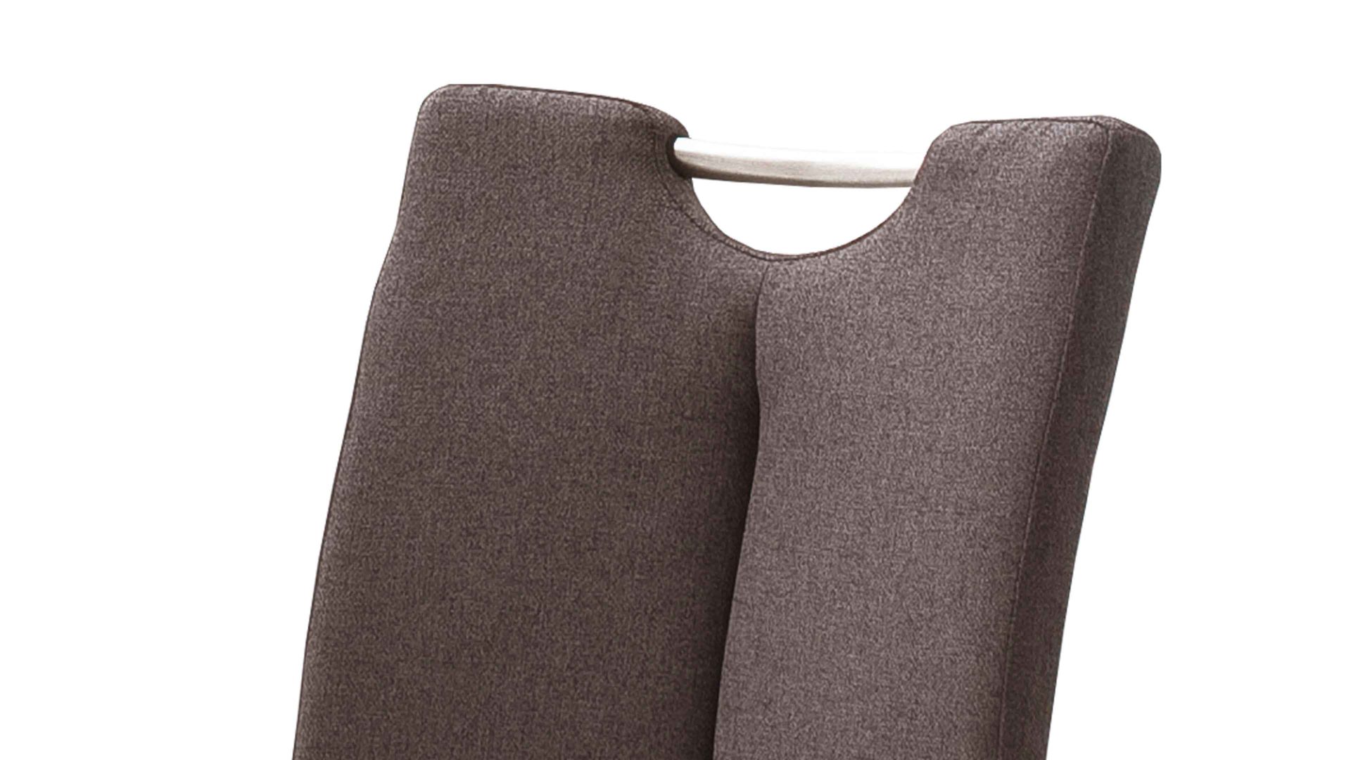 Mit dem braunen Feingewebebezug strahlt der Freischwinger jede Menge Wärme und Gemütlichkeit aus. Die Basis des Stuhls bildet ein gebürstetes Edelstahlgestell. Es gewährleistet die nötige Stabilität. Die bestens miteinander harmonierenden Farben und Materialien verleihen dem Schwingstuhl eine durch und durch stilvolle Erscheinung.