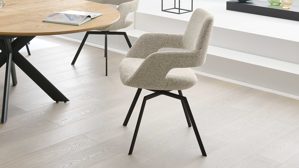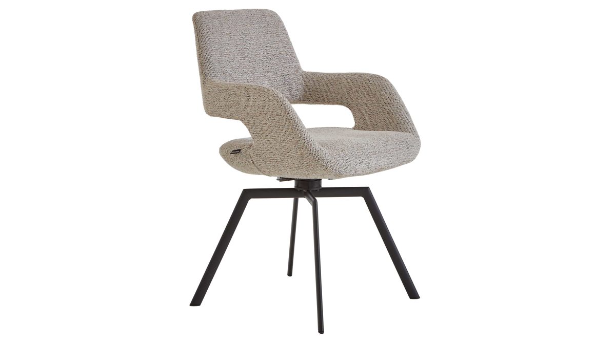 sandfarben melierter Webbstoffbezug und anthrazitfarben pulverbeschichtetes Metall