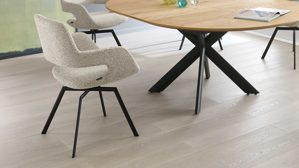 aus vier Gestellvarianten in Metall und Holz, Stoff- und Lederbezügen wählen