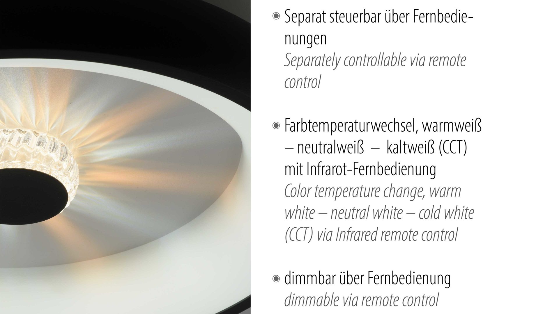 Innen- und Außenring separat steuerbar über Fernbedienung