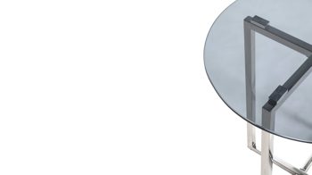 Dieser hochwertige Beistelltisch verkörpert die Eleganz schlichter Modernität. Mit dem polierten Edelstahlgestell und dem grau getönten Floatglas erscheint er puristisch und ist dazu sehr robust und langlebig. Bei dem Glas handelt es sich um qualitativ erstklassiges Sicherheitsglas mit einer Stärke von 8 mm. Der Tisch hat einen Durchmesser von ca. 50 cm und ist ca. 55 cm hoch.