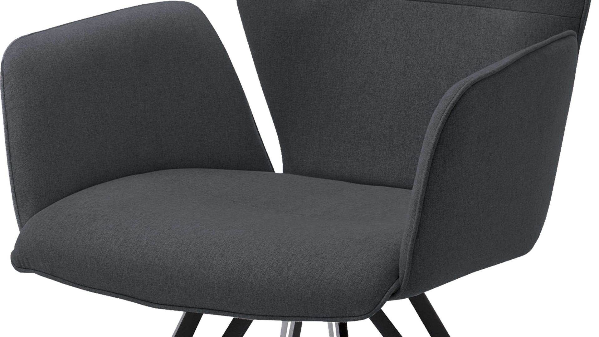 Durch die feine Haptik des Bezugs und die Armlehnen genießen Sie allerhöchsten Sitzkomfort. Darüber hinaus ist der Schalenstuhl um 180 Grad drehbar und mit einer Rückholfunktion ausgestattet. Diese Charakteristika verstärken die an sich schon ausgeprägte Bequemlichkeit, was beispielsweise dann spürbar wird, wenn Sie sich der Person, die am Tisch neben Ihnen sitzt, frontal zuwenden möchten.