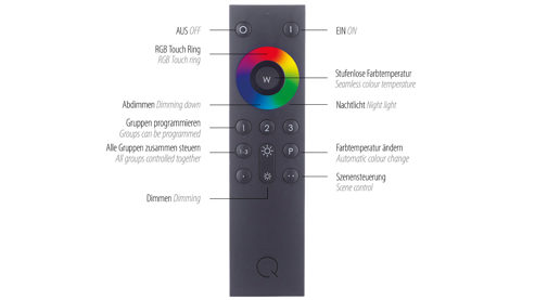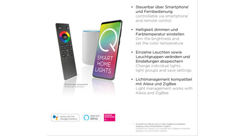 dimmbare Lichtfarben - schaltbar per Q® Funk-Fernbedienung, App oder Sprachsteuerung