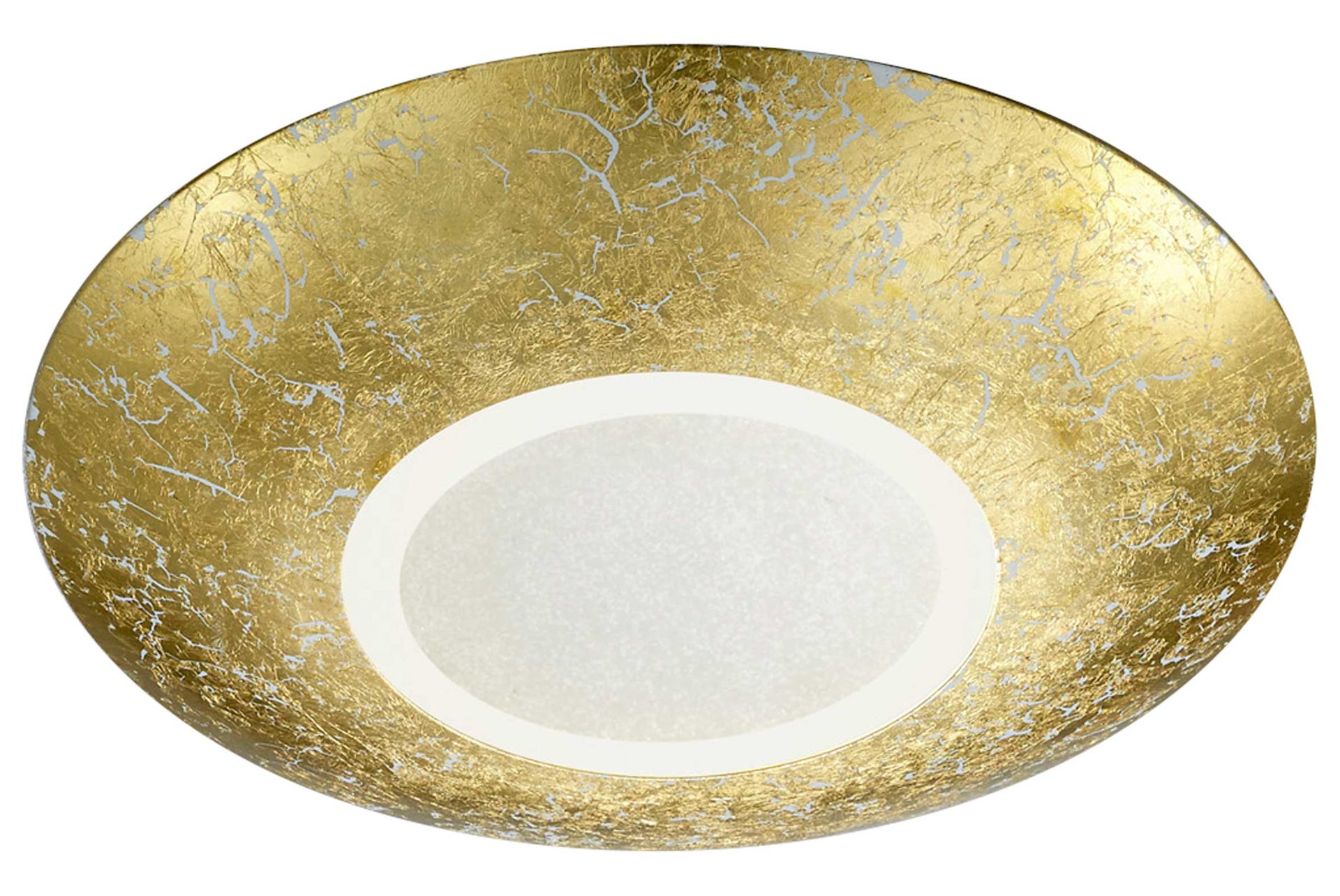 Die runde TRIO LED-Deckenleuchte Chiros ist aus goldfarbenem Metall hergestellt. Durch die edle, außergewöhnliche Kombination der Form, des Materials und der Farbe mit der bewusst eingearbeiteten Gebrauchsspuren-Optik strahlt die Lampe antiken Retro-Charme aus. Besonders fantasievolle Betrachter erinnert die Leuchte möglicherweise auch an einen faszinierenden Weltall-Planeten für zuhause.